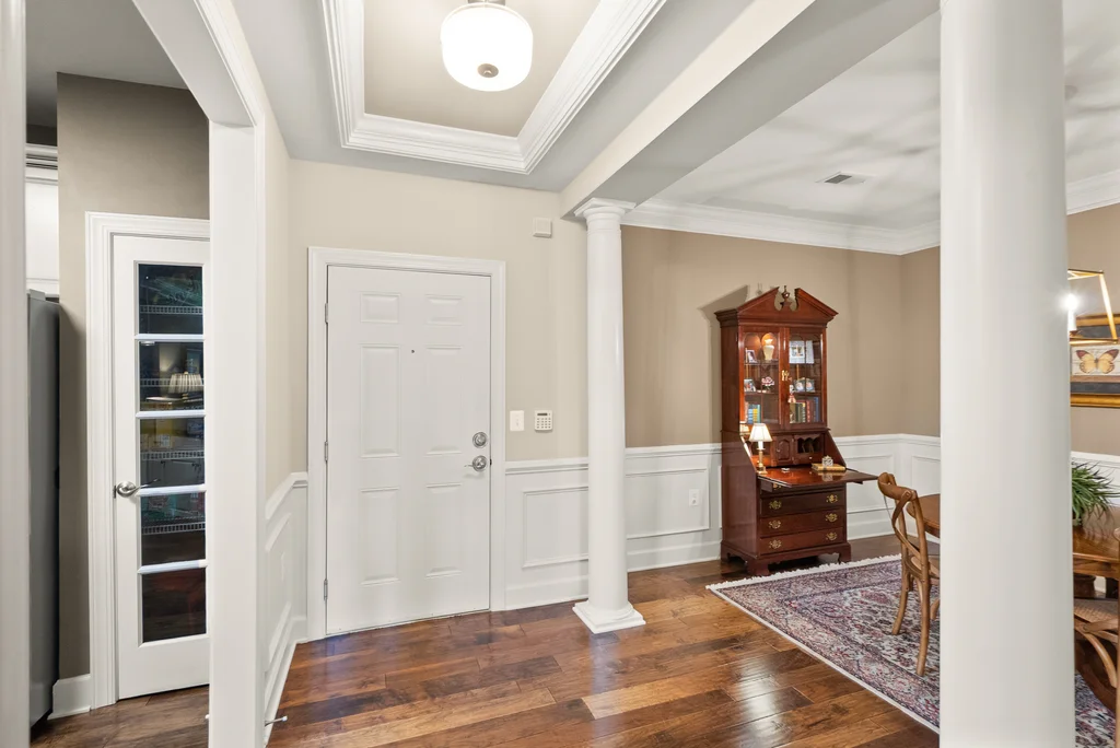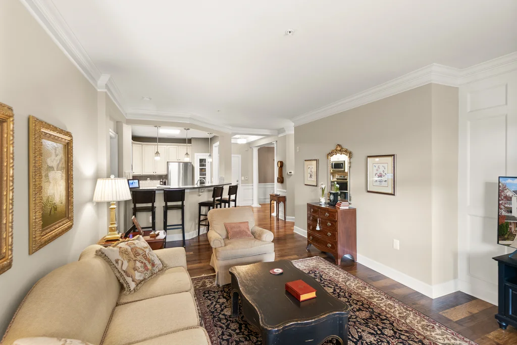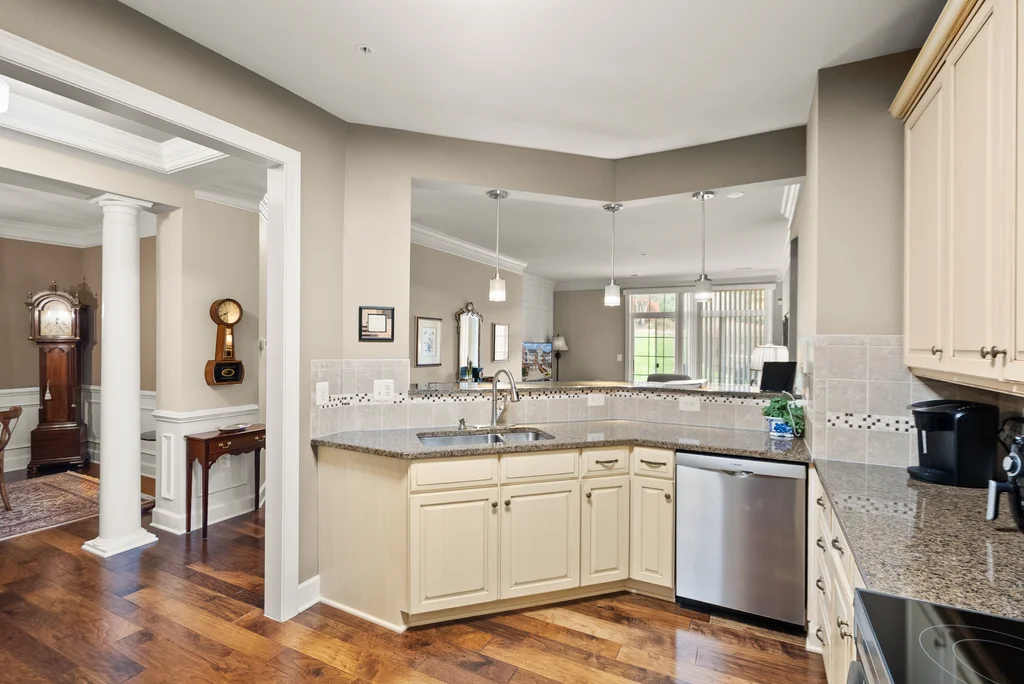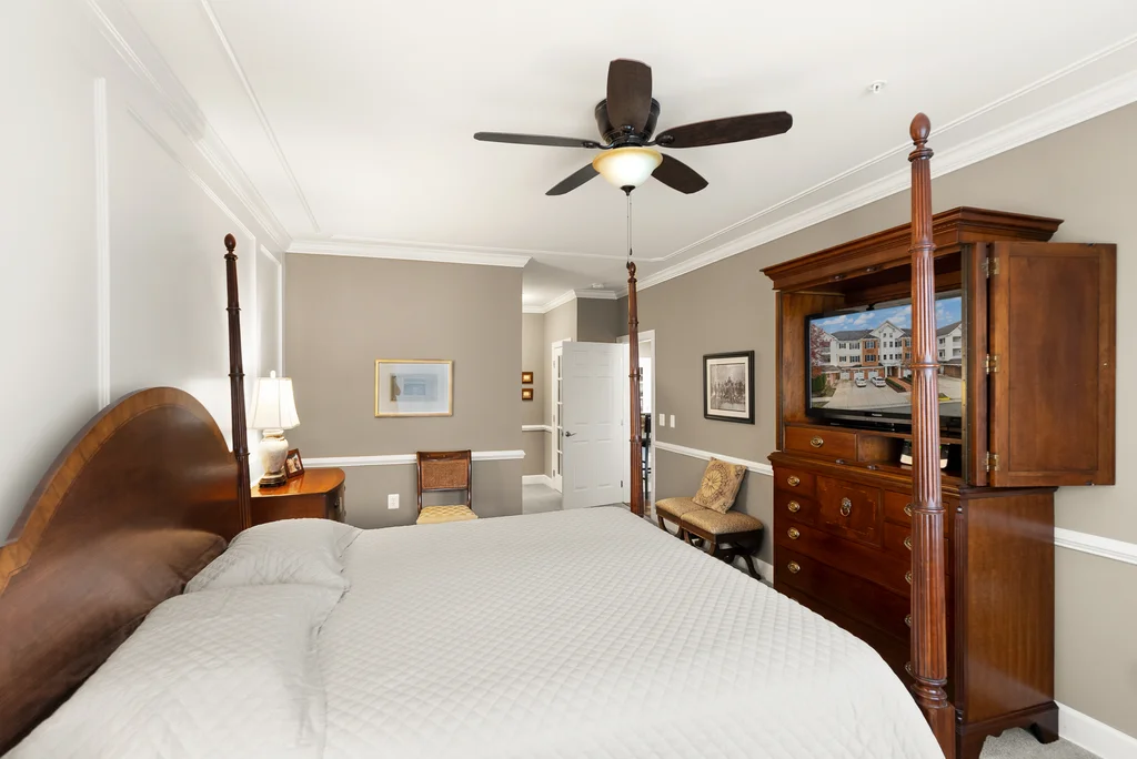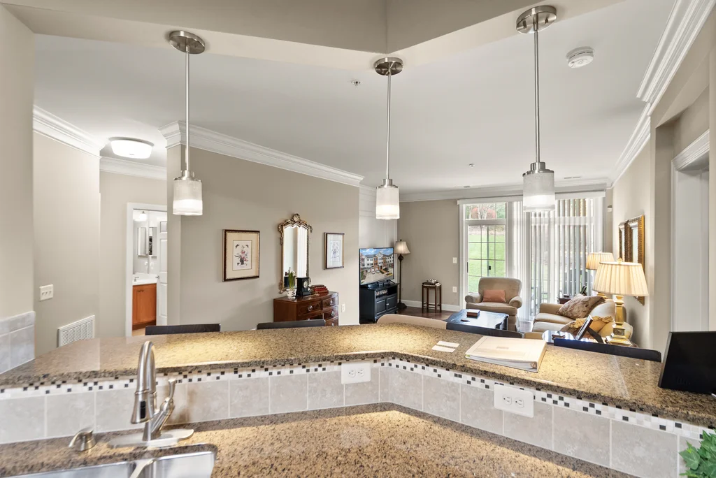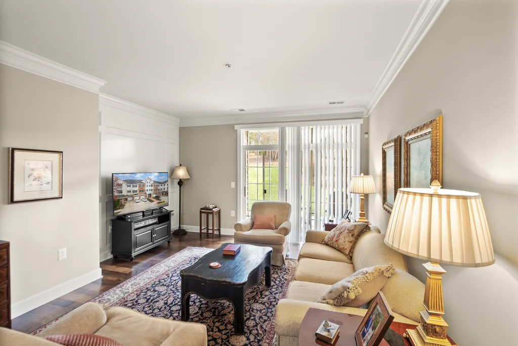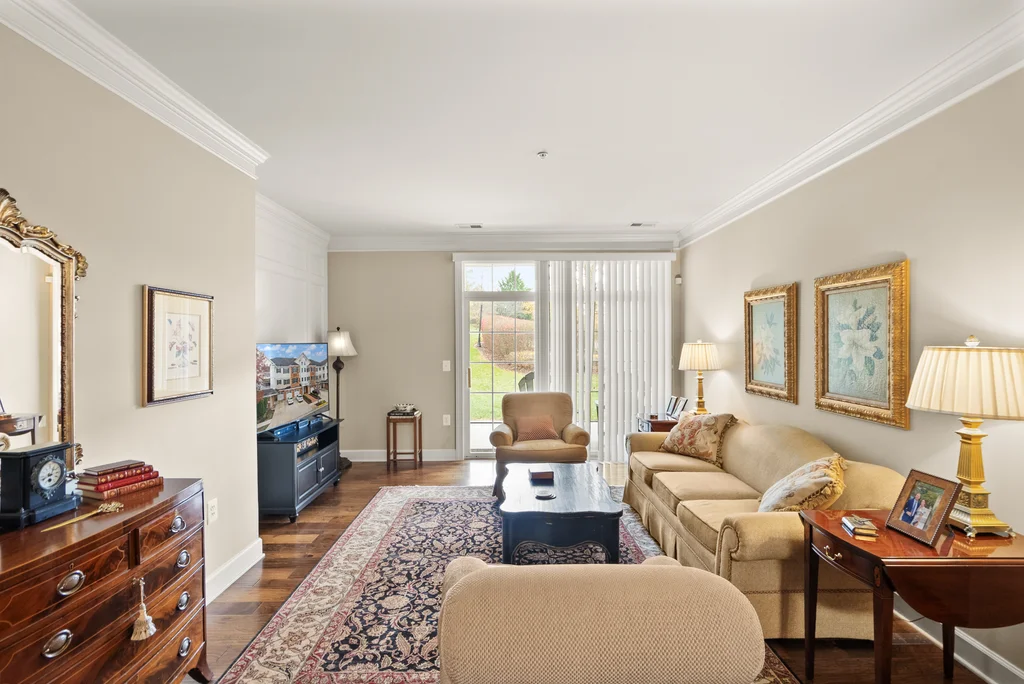 Resort-Style 55+ Living at 15251 Royal Crest Drive #103 in Haymarket! Discover the pinnacle of active adult luxury in the gated community of Regency at Dominion Valley. This exquisite 2-bedroom, 2-bathroom condo offers carefree, low-maintenance living with a host of amenities that make every day feel like a vacation. All the extras are here....crown molding, wainscotting. This was the model home! Home Highlights: Open Floor Plan & Gourmet Kitchen: Enjoy a spacious, light-filled layout with high-end finishes, hardwood floors, and a well-appointed kitchen featuring a large breakfast bar, granite countertops, and stainless steel appliances. Main-Level Convenience: A desirable main-level primary suite and second bedroom provide easy, stair-free living with walk-in closets and a luxurious primary bath with an oversized walk-in shower. First floor living eliminates the elevator ride or the staircase. Detached Garage: Includes a detached single-car garage, adding convenience and extra storage space. Outdoor Relaxation: Relax on your private patio and enjoy the quiet surroundings, with access to miles of walking and biking trails. Gaze out at the spectacular sunrises with morning coffee or the evening sunsets with a glass of wine and friends! Community Amenities: Premier Clubhouse: A magnificent 30,000-square-foot clubhouse serves as the hub for social life, featuring two on-site restaurants, a library, billiards, card rooms, and a community center with an activities director. AND enjoy reciprocal privileges at Dominion Valley. Fitness & Recreation: Stay active with a state-of-the-art fitness center, indoor heated pool and spa, an outdoor pool, tennis courts, and pickleball courts. A full time Activities Manager is on-site to book excursions to the theatre, professional sports events, and cultural enrichment. Golf Course: Nestled within an Arnold Palmer Signature golf course and a second 18 hole Executive Course for a quicker round (membership available). Experience a lifestyle of luxury, privacy, and relaxation, with exterior maintenance, trash removal, cable TV, and high-speed internet all covered by the association. Don't miss this incredible opportunity! Inquire today to schedule your private showing! Updates: New stainless steel appliances 2022, HVAC 2023, Hot Water Heater 2023, Painted 2021.